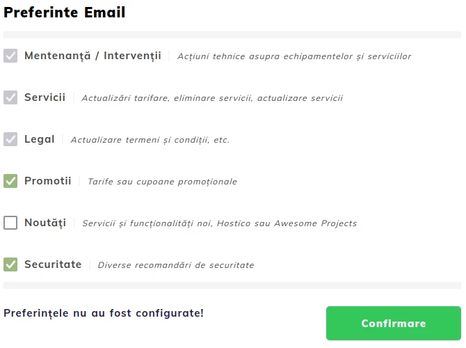 Denne minusen skyldtes rigiditeten til applikasjonen brukt i utviklingen av plattformen, men med rekonstruksjonen fra bunnen av av Hostico, har vi nå den nødvendige flyten til å tilby dere et komplekst nyhetsbrev-lignende varslingssystem.