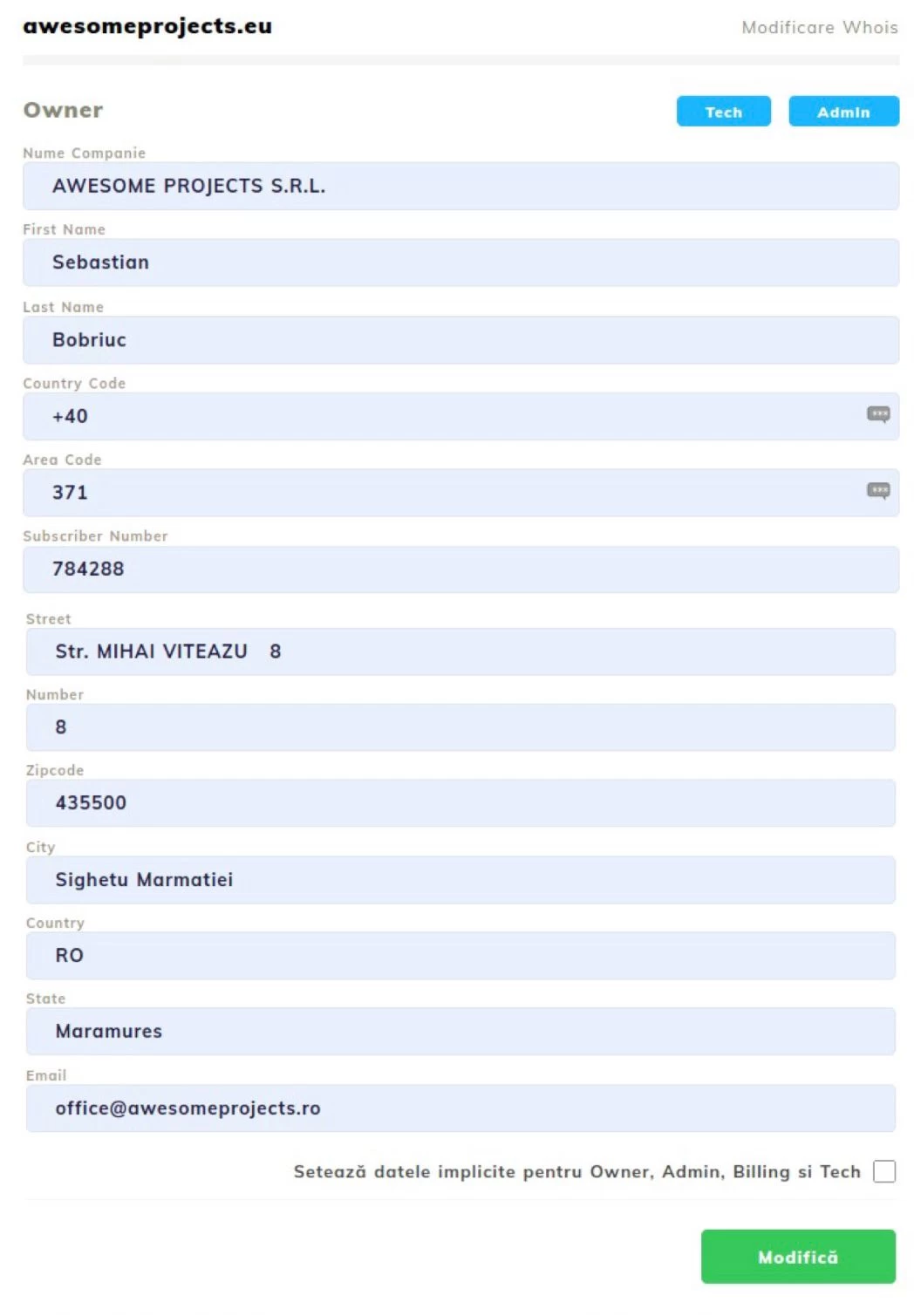 - Å endre registrantdata på domenenivå vil ikke automatisk føre til oppdatering av faktureringsdataene. For å endre faktureringen må du følge trinnene i den tilhørende veiledningen: Endre fakturaen pro forma;