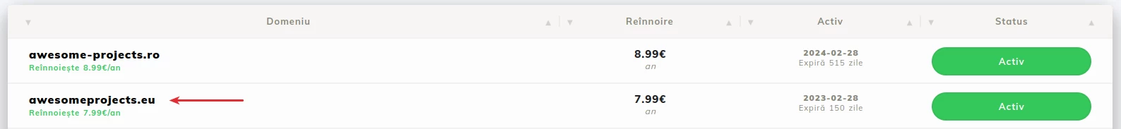 - På den viste siden vil vi velge domenet som eierens informasjon må oppdateres for.