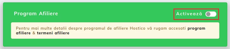 - I den åpne siden kan vinduet sees der vi kan aktivere Affiliate Programmet;